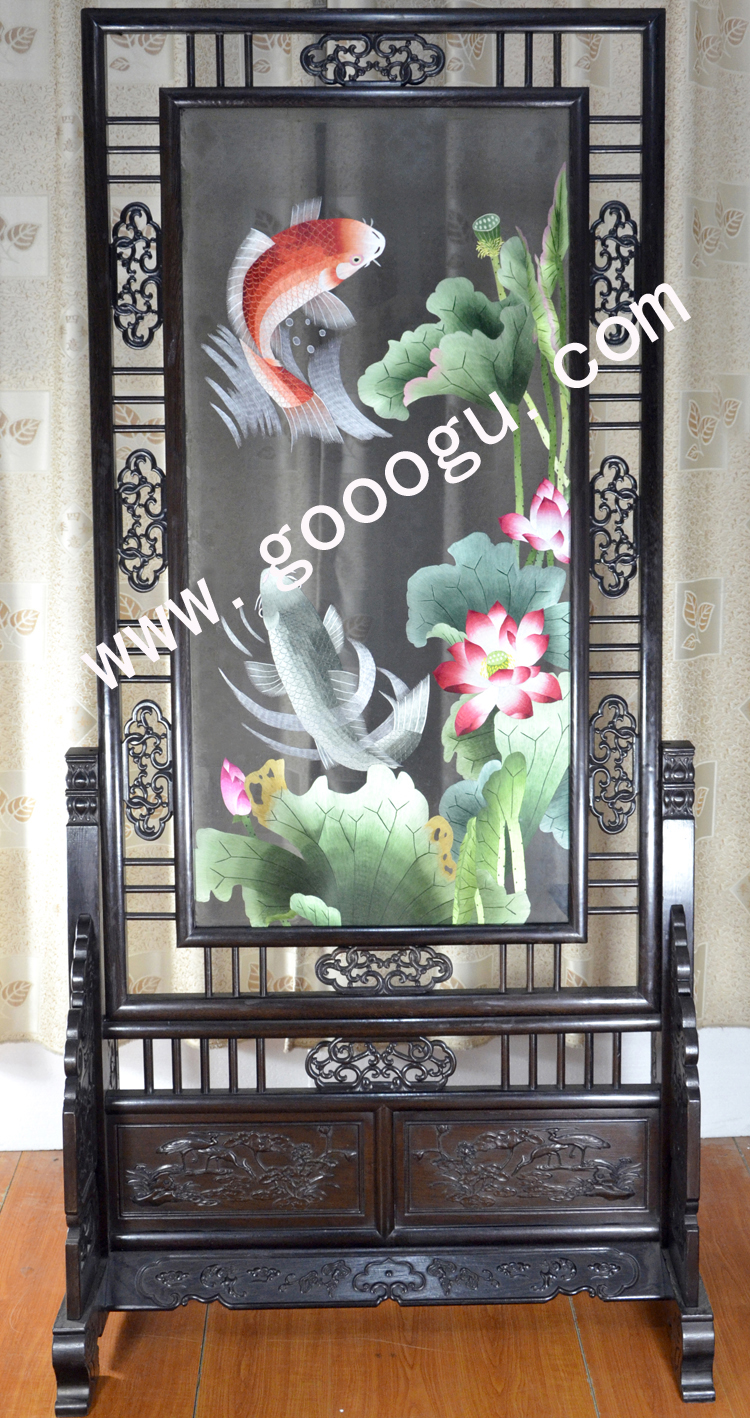 蘇繡精品屏風(fēng) 滿(mǎn)繡隔斷 純手工精品 荷花 中式屏風(fēng)