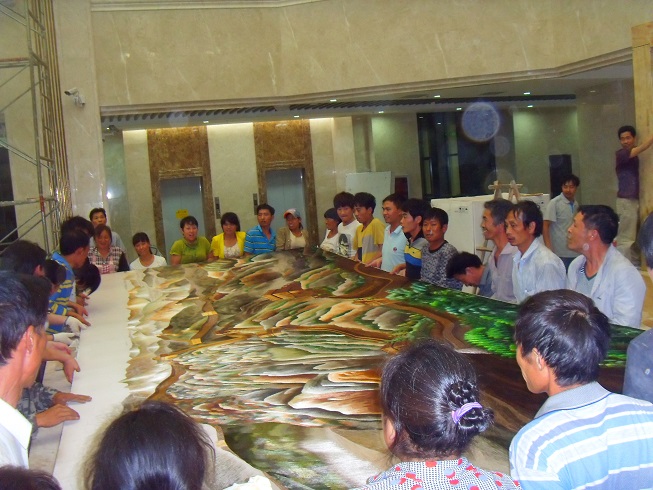 貴州盤江精煤股份有限公司是1999年經貴州省人民政府批準,由盤江煤電集團公司作為主發(fā)起人,聯合中煤進出口公司、貴陽特鋼公司、防城港務局等七家單位共同發(fā)起設立的股份制企業(yè),盤江股份于2001年5月在上交所正式掛牌交易。 公司是盤江礦區(qū)煤炭開發(fā)主體。盤江礦區(qū)是我國十二五規(guī)劃建設的全國14個大型煤炭生產基地之一。礦區(qū)因與云南富源、宣威接壤,地處中國攀西六盤水這個資源富集金三角的最南端,又以豐富的煤炭資源稱冠江南,被譽為金三角下的一顆明珠。 2013年7月盤江股份集團大樓新址即將完工,蘇州嬌古蘇繡負責承建新大樓一樓的刺繡隔斷工程,在時間有限的情況下,嬌古蘇繡負責人接到通知后緊鑼密鼓的安排各道工序,工藝師們都在加班加點,在時間有限的情況下高效率的完成了任務,6月底,嬌古蘇繡安排工作人員前往盤江股份集團所在地貴州,為整體隔斷工程進行裝裱并指導安裝。在經過大家相互配合的情況下,隔斷的主體工程已經安裝就位,盤江股份集團公司的領導對嬌古蘇繡工作人員高效率的完成任務給予高度的評價,對刺繡工程的整體效果也是非常滿意。