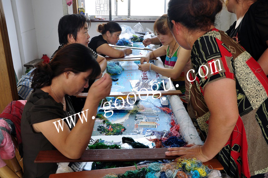 嬌古蘇繡繡娘正在一起認真研討刺繡的工藝和繡法,確保作品達到行業(yè)高水平