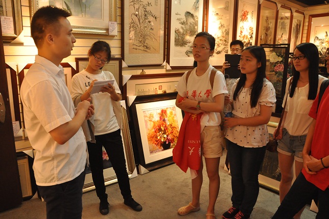 將中國傳統(tǒng)文化的藝術(shù)和高端學術(shù)相結(jié)合是時代發(fā)展的趨勢,用高科技的文化來充實民族工藝的發(fā)展,今天上午作為中國紡織業(yè)的高等學府東華大學的紡織學院及紡織科技協(xié)會走進蘇州嬌古蘇繡,嬌古蘇繡總經(jīng)理張奇?zhèn)ハ壬哟饲皝韰⒂^的一行人員,并向同學們講解了蘇繡的制作過程和蘇繡工藝。在交流參觀過程中,同學們不時的提出問題,張總都是一一為其解答,最后張總希望同學們努力學習,將先進的技術(shù)應(yīng)用到我們的民族文化當中,為弘揚文化藝術(shù)作出貢獻。