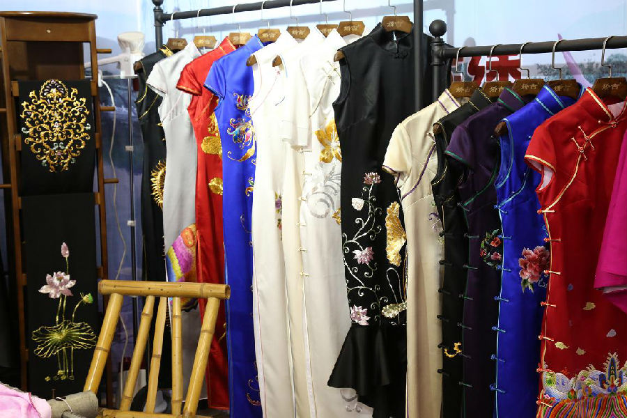 嬌古蘇繡展出的蘇繡旗袍及披肩