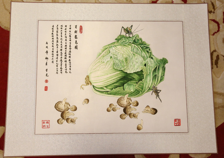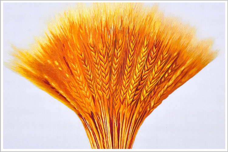 大家都知道,白菜很容易成活,其產(chǎn)量很高,它的葉子是一片片包攏住菜心的。所以自古白菜便寓意著連年大豐收、風(fēng)調(diào)雨順、五谷豐登。而白菜的諧音是“百財(cái)”、”擺財(cái),“精致的菜葉包裹著菜心“財(cái)心”,所以又有守住財(cái)富的寓意。由此,這一款“百財(cái)聚來(lái)圖”自古便向人傳遞著美好的夙愿。?? ?????? 我們尋找著秋天,它也許藏在火通通的柿子樹(shù)梢,也許藏在綠油油的菜地間,但要說(shuō)秋是什么顏色,吹風(fēng)麥浪的景象應(yīng)該會(huì)立馬浮現(xiàn)在大部分人的腦海里吧。只因?yàn)榍铮揪褪鞘斋@的季節(jié),金黃色的浪花,成熟的麥穗被沉甸甸的果實(shí)壓彎了腰,農(nóng)民伯伯笑開(kāi)了顏。我想,這金黃的季節(jié)也許就藏在金燦燦的稻穗上吧。很神奇的是,當(dāng)它們是空著的時(shí)候,必然會(huì)茁壯挺立,昂首睨視;但但凡它們臻于成熟,飽含鼓脹的麥粒,它們便謙遜地低垂著頭,不露鋒芒。??做人理應(yīng)如麥穗,不管是在什么情況下,保持真我,處于劣勢(shì)的時(shí)候不自卑,有優(yōu)勢(shì)的時(shí)候不驕傲,人生自然會(huì)取得收獲。?? ????????