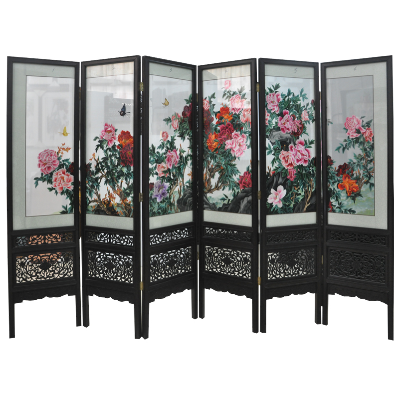 嬌古蘇繡雙面繡 牡丹圖折疊屏風(fēng) 大廳家居玄關(guān)隔斷 純手工刺繡