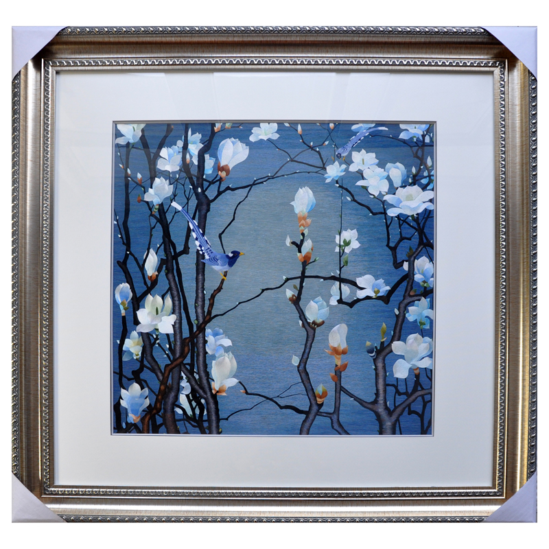 蘇繡玉蘭花鳥刺繡收藏品畫中歐式結(jié)合花鳥蘇繡滿繡畫