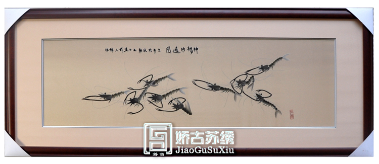 辦公室書房裝飾畫蘇繡單面繡壁畫接待室裝飾壁畫齊白石蝦中式掛畫