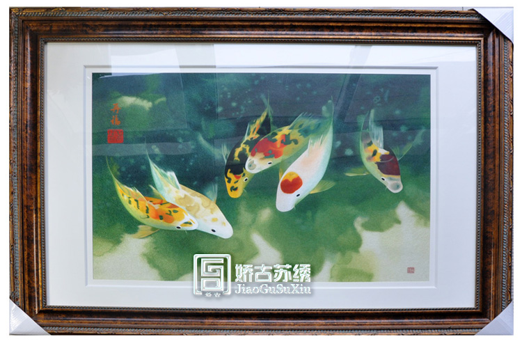 蘇繡手工刺繡畫居家裝飾壁畫錦魚圖客廳沙發(fā)后背景墻畫