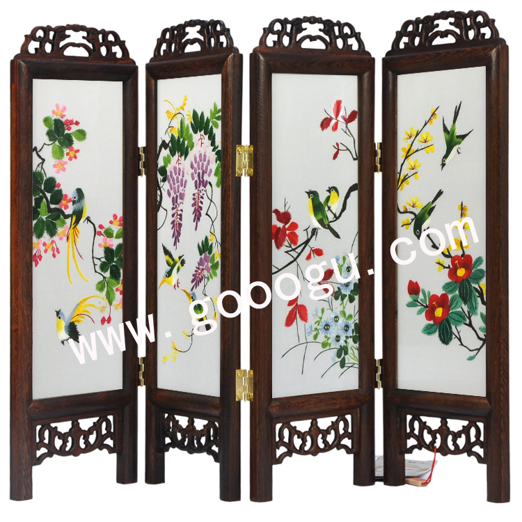 四扇雙面繡折疊小屏風|工藝小屏風|蘇繡小屏風禮品
