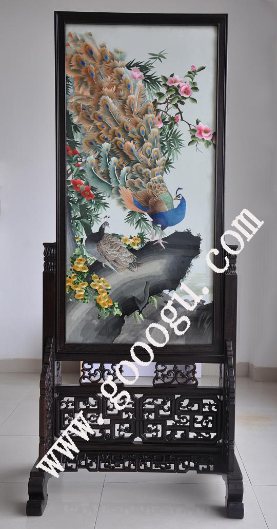 蘇繡屏風(fēng)精品,蘇州雙面繡隔斷,家具屏風(fēng)收藏品