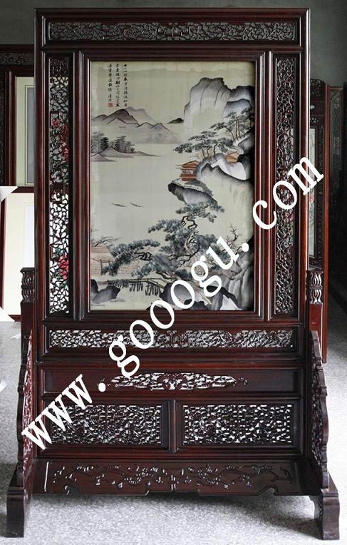 唐寅山水屏風|手工雙面繡屏風|木雕屏風