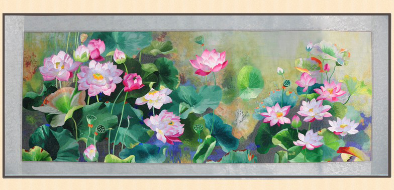 蘇繡荷塘 純手工刺繡 荷花 客廳臥室裝飾壁畫(huà) 送朋友