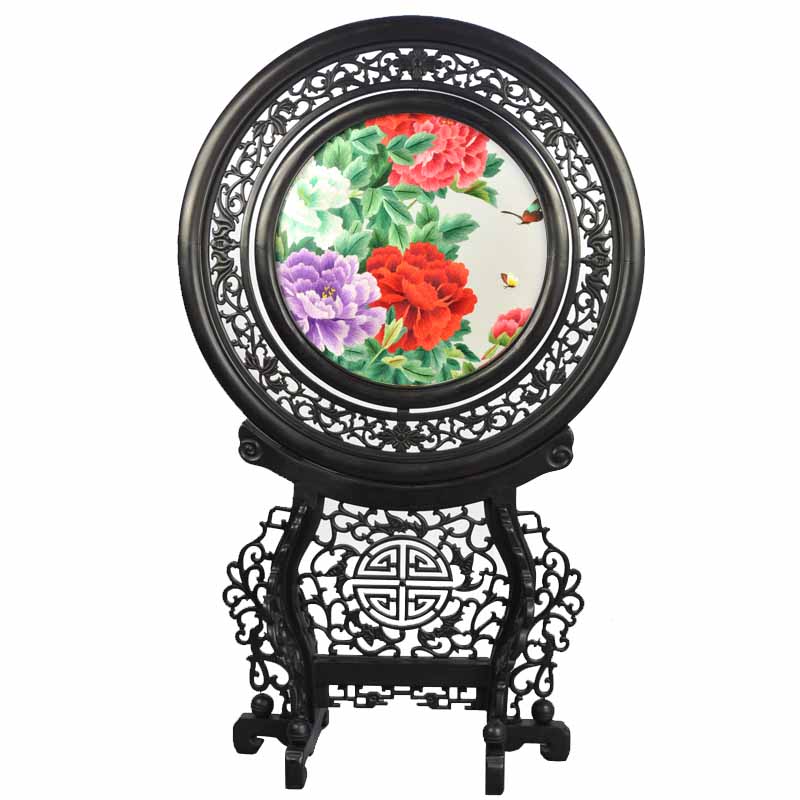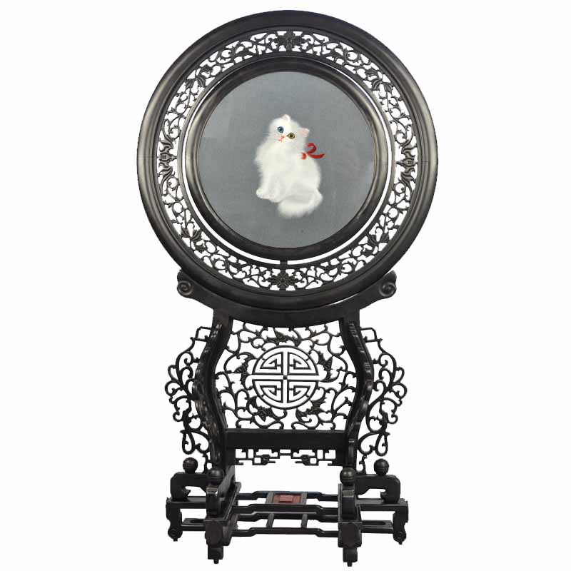 產(chǎn)品名稱:檀木同心圓雕花架(雙面繡) (作品代碼:ST-669) 產(chǎn)品規(guī)格:刺繡圖案尺寸 圓直徑20CM 外框整體尺寸寬32CM,高57CM 產(chǎn)品工藝:蘇州繡娘手工刺繡。繡品可360度旋轉(zhuǎn) 產(chǎn)品材質(zhì):真絲面料+桑蠶絲線+玻璃+紫檀木架 產(chǎn)品包裝:錦盒禮品裝 嬌古出廠價(jià):2800元/件 最小起訂量:1件----廠家直銷,可當(dāng)天發(fā)貨(可混配圖案) 產(chǎn)品描述:【檀木同心圓雕花架】蘇州雙面繡為蘇州繡娘純手工刺繡而成,木框?yàn)槟壳爸袊?guó)蘇州雙面繡最高材質(zhì)紫檀,整體框架花紋雕刻細(xì)膩。圖案有花卉(牡丹,梅花,荷花,蘭花等),花鳥(niǎo),動(dòng)物(熊貓,老虎,魚(yú)等),山水,風(fēng)景,名家字畫(huà)等。圖案多達(dá)一百多種,有古色古香的,有現(xiàn)代氣息的,高貴典雅,是贈(zèng)送客人的重要禮品之一。 注:此款為蘇繡雙面繡為高檔蘇繡雙面繡,牡丹題材與蘇繡的結(jié)合,很能代表中國(guó)傳統(tǒng)文化特色。手工刺繡做工精美之外講究整體的搭配與意境,是值的推薦的一款蘇繡禮品。(可根據(jù)需要加企業(yè)LOGO等)。 注:此款另有圓直徑為30CM的刺繡圖案,整體尺寸按同比例放大。