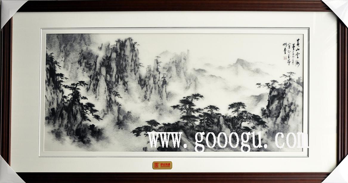 蘇繡名稱:蘇繡裝飾畫--黃山云海 (作品代碼-D1288) 蘇繡規(guī)格:50X120CM(圖案尺寸) 78X158CM(外框尺寸) 蘇繡工藝:蘇州工藝師手工刺繡 蘇繡材質(zhì):真絲面料、實(shí)木框、桑蠶絲線、玻璃 蘇繡包裝:傳統(tǒng)蘇繡精品裝 嬌古蘇繡出廠參考價(jià):請(qǐng)來(lái)電咨詢(含運(yùn)費(fèi)) 發(fā)貨方式:由我司安排發(fā)往客人指地點(diǎn) 蘇繡作品描述:整幅作品由嬌古蘇繡資深工藝師歷時(shí)八個(gè)月手工刺繡而成,整幅作品選材黃山云海,意境深遠(yuǎn)。整幅作品采用亂針繡手工刺繡而成,用絲線最細(xì)處為三十二分之一(一絲)。表達(dá)出黃山云海的奇、仙、海等意境。刺繡技法發(fā)揮的淋漓盡致,表現(xiàn)出刺繡者高超的技法以及對(duì)風(fēng)景作品的深刻領(lǐng)悟。