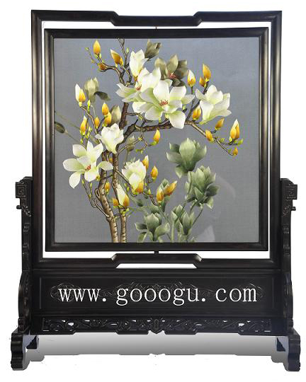 精品白玉蘭雙面繡、繡工精細(xì),該產(chǎn)品為手工制作,玉蘭花部分采用真絲繡成,有光澤度,為收藏精品