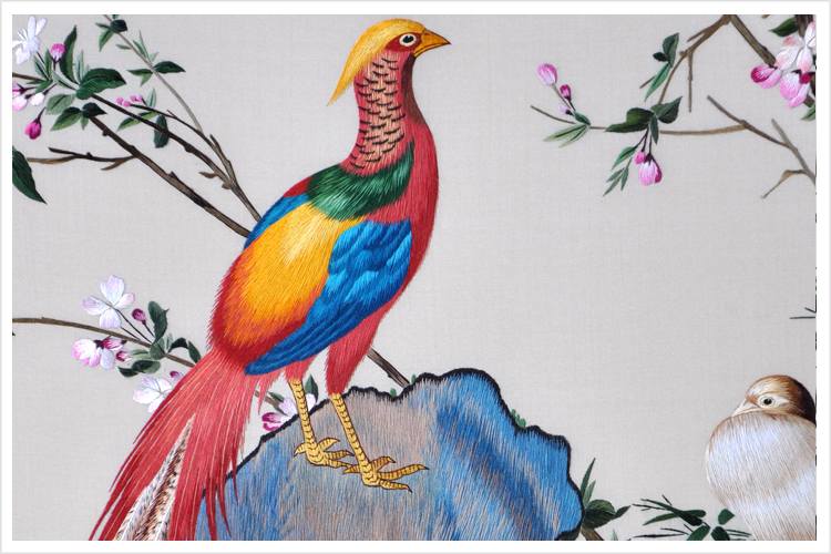 【品 牌】:嬌古 (作品代碼 D-1036) 【品 名】:郎世寧工筆錦雞牡丹裝飾畫(手工蘇繡) 【品 質(zhì)】:1-2絲刺繡 (蘇繡小知識(shí):1根蘇繡絲線可分為16絲,中檔刺繡皆為10絲所繡,中高檔刺繡皆為6-8絲,高檔刺繡皆為4-6絲,精品刺繡皆為1-4絲) 【尺 寸】:畫心尺寸50*98cm 整體尺寸73*130cm 【產(chǎn)品工藝】:手工刺繡 【絲線材質(zhì)】:蠶絲線 【用 途】:居家裝飾及政府禮品、外賓禮品、生日禮物、賀壽禮品、領(lǐng)導(dǎo)升遷、出國禮品等等。 【出廠價(jià)格】:28000元 細(xì)節(jié)圖 .jpg)
