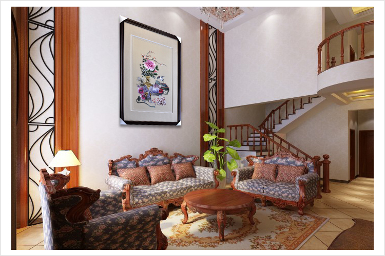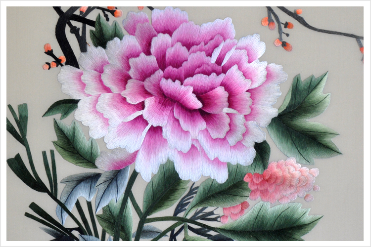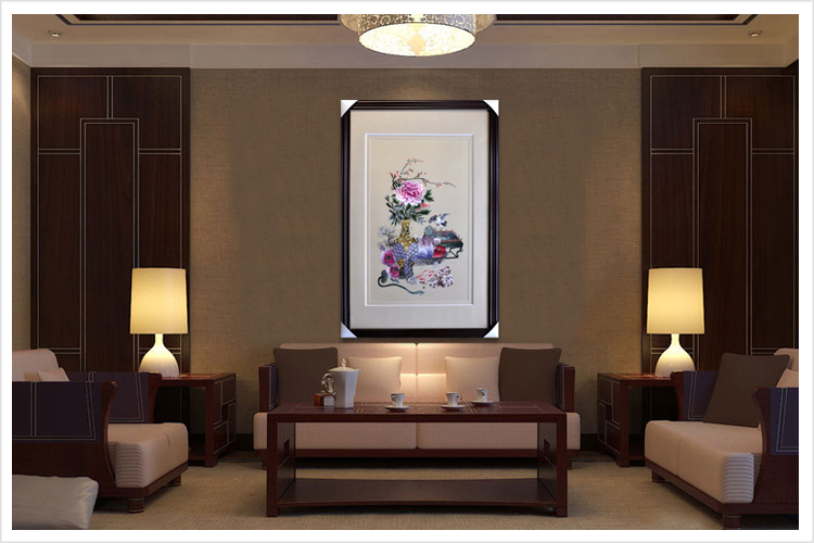 【品 牌】:嬌古 (作品代碼 D-1032) 【品 名】:吉祥富貴裝飾畫(huà)(手工蘇繡) 【品 質(zhì)】:2-4絲刺繡 (蘇繡小知識(shí):1根蘇繡絲線可分為16絲,中檔刺繡皆為10絲所繡,中高檔刺繡皆為6-8絲,高檔刺繡皆為4-6絲,精品刺繡皆為1-4絲) 【尺 寸】:畫(huà)心尺寸53*83cm 整體尺寸77*113cm 【產(chǎn)品工藝】:手工刺繡 【絲線材質(zhì)】:蠶絲線 【用 途】:居家裝飾及政府禮品、外賓禮品、生日禮物、賀壽禮品、領(lǐng)導(dǎo)升遷、出國(guó)禮品等等。 【出廠價(jià)格】:12000元 【細(xì)節(jié)欣賞】