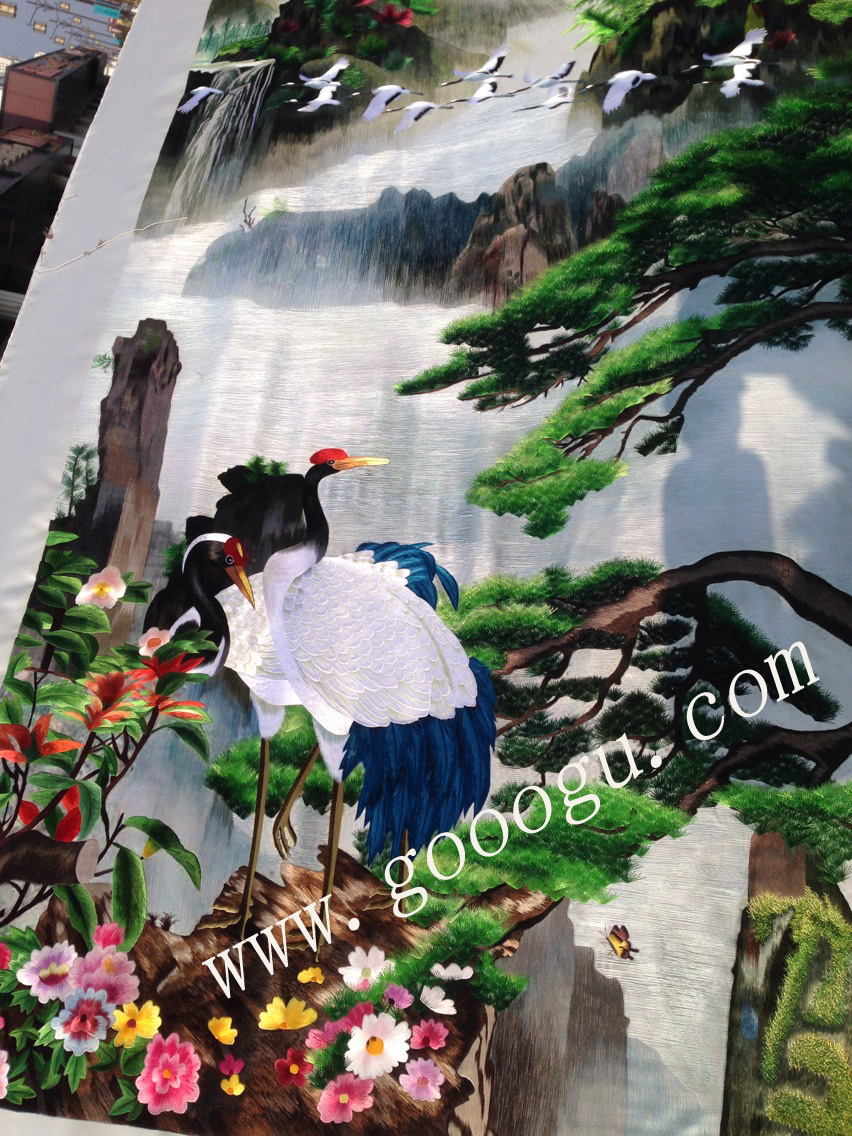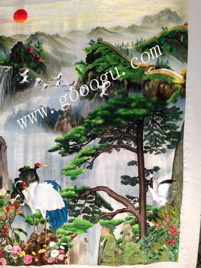 在一次出差過程中,黃先生來到蘇州,無意中發(fā)現(xiàn)了蘇繡的奇特,為此,黃先生來到嬌古蘇繡,把自己的想法和要求告訴了嬌古的工作人員,在經(jīng)過很多圖片的帥選之后,確定下來訂做這款《錦繡中華》的作品。