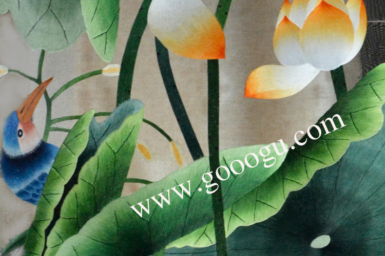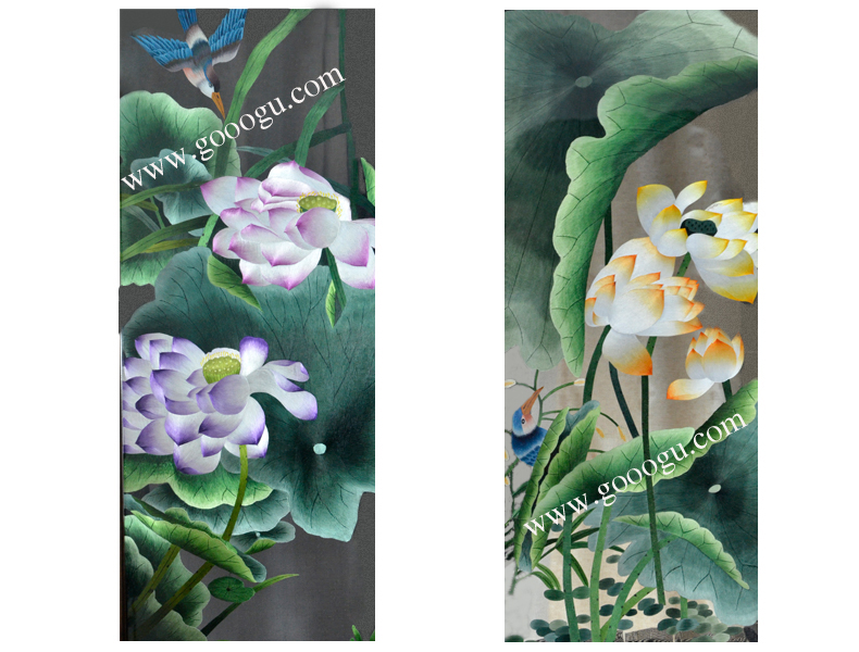 【產(chǎn)品名稱】:紅木蘇繡屏風(fēng)---荷花翠鳥(雙面繡) (作品代碼:ZP-1003) 【產(chǎn)品規(guī)格】:圖案尺寸寬35CM每扇,高90CM每扇 外框整體尺寸寬60cm每扇,高210cm每扇 【產(chǎn)品工藝】:手工刺繡 【產(chǎn)品材質(zhì)】:真絲面料+紅木框+桑蠶絲線+玻璃 【產(chǎn)品包裝】:木箱包裝,用海綿包扎,確保運(yùn)輸安全 【出廠價(jià)】:62800元 【產(chǎn)品運(yùn)輸】:我司負(fù)責(zé)發(fā)往客戶指定地點(diǎn),蘇州附近城市可送貨上門! 【產(chǎn)品說明】:此款紅木雙面繡折疊屏風(fēng),是由蘇州工藝師耗時(shí)數(shù)個(gè)月精心手工刺繡而成,刺繡圖案繡工精細(xì),顏色搭配均勻,整體給人舒適,愜意之感,木雕細(xì)膩精美,是蘇繡屏風(fēng)中的經(jīng)典作品。是企事業(yè)大堂或大廳的重要裝飾品之一!歡迎親臨嬌古蘇繡展示廳觀看實(shí)物! 【作品欣賞】 .jpg) 高端的繡工令荷花彰顯獨(dú)特的魅力 .jpg)