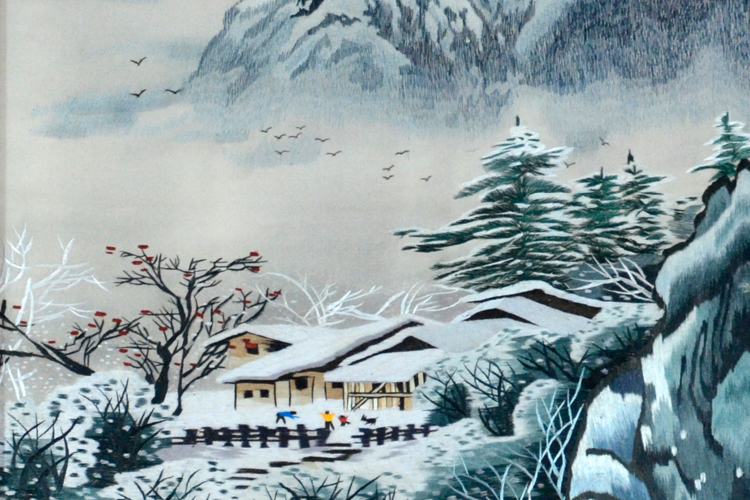 【產(chǎn)品名稱】:蘇繡玄關(guān)屏風(fēng)---冬趣(雙面繡) (作品代碼:P-1072) 【產(chǎn)品規(guī)格】:圖案尺寸寬度50cm,高度120cm 外框整體尺寸寬90cm,高200cm 【產(chǎn)品工藝】:手工刺繡 【產(chǎn)品材質(zhì)】:真絲面料+雞翅木框+桑蠶絲線+玻璃 【產(chǎn)品包裝】:木箱包裝,用海綿包扎,確保運(yùn)輸安全 【出廠價(jià)】:13800元 【產(chǎn)品運(yùn)輸】:我司負(fù)責(zé)發(fā)往客戶指定地點(diǎn),蘇州附近城市可送貨上門! 【產(chǎn)品說明】:此款雙面繡玄關(guān)屏風(fēng),是由蘇州工藝師耗時(shí)三個(gè)月精心手工刺繡而成,刺繡圖案以山水《冬趣》為題材繡工精細(xì),顏色搭配均勻過渡自然,山水畫展現(xiàn)了冬天的美景,拋開城市的喧囂將鄉(xiāng)村冬天的美景盡收眼底,給人輕松而又舒心的感覺。屏風(fēng)的框架選用進(jìn)口的雞翅木木為料!歡迎親臨嬌古蘇繡展示廳觀看實(shí)物! 【作品欣賞】 .jpg)