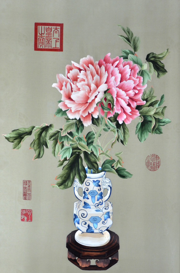 【產(chǎn)品名稱】:郎世寧牡丹屏風(fēng) (作品代碼:P-1095) 【產(chǎn)品規(guī)格】:圖案尺寸寬度70cm,高度110cm 外框整體尺寸寬130cm,高210cm 【產(chǎn)品工藝】:手工刺繡 【產(chǎn)品材質(zhì)】:真絲面料+紅木框+桑蠶絲線+玻璃 【產(chǎn)品包裝】:木箱包裝,用海綿包扎,確保運(yùn)輸安全 【出廠價(jià)】:36800元 【產(chǎn)品運(yùn)輸】:我司負(fù)責(zé)發(fā)往客戶指定地點(diǎn),蘇州附近城市可送貨上門! 【產(chǎn)品說明】:此款雙面繡屏風(fēng),是由蘇州工藝師耗時(shí)三個(gè)月精心手工刺繡而成,刺繡圖案以宮廷畫師郎世寧的作品為題材繡工精細(xì),顏色搭配均勻過渡自然,整體給人舒適,愜意之感,屏風(fēng)的框架選用紅木為料,是蘇繡屏風(fēng)中的經(jīng)典作品。歡迎親臨嬌古蘇繡展示廳觀看實(shí)物! 【作品欣賞】 .jpg)