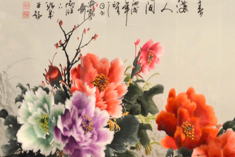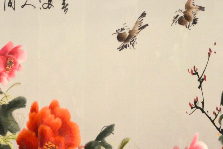 【產品名稱】:春滿人間屏風 (作品代碼:P-1097) 【產品規(guī)格】:圖案尺寸寬度160cm,高度90cm 外框整體尺寸寬220cm,高205cm 【產品工藝】:手工刺繡 【產品材質】:真絲面料+雞翅木框+桑蠶絲線+玻璃 【產品包裝】:木箱包裝,用海綿包扎,確保運輸安全 【出廠價】:28000元 【產品運輸】:我司負責發(fā)往客戶指定地點,蘇州附近城市可送貨上門! 【產品說明】:此款雙面繡屏風,是由蘇州工藝師耗時四個月精心手工刺繡而成,刺繡圖案以牡丹花春滿人間為題材繡工精細,顏色搭配均勻過渡自然,整體給人舒適,愜意之感,屏風的框架選用雞翅木為料,是蘇繡屏風中的經典作品。適合家用玄關或辦公室玄關裝飾!歡迎親臨嬌古蘇繡展示廳觀看實物! 【作品欣賞】 .jpg)