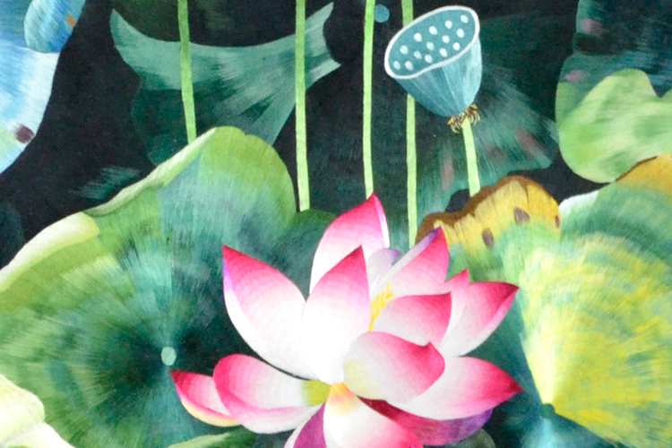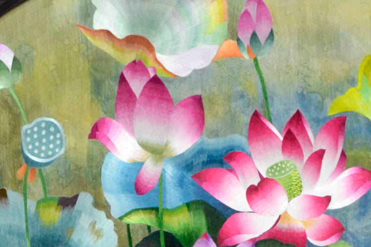 【產(chǎn)品名稱】:滿繡荷花屏風(fēng) (作品代碼:P-1098) 【產(chǎn)品規(guī)格】:圖案尺寸為100cm直徑的圓 外框整體尺寸寬160cm,高210cm 【產(chǎn)品工藝】:手工刺繡 【產(chǎn)品材質(zhì)】:真絲面料+雞翅木框+桑蠶絲線+玻璃 【產(chǎn)品包裝】:木箱包裝,用海綿包扎,確保運(yùn)輸安全 【出廠價(jià)】:36800元 【產(chǎn)品運(yùn)輸】:我司負(fù)責(zé)發(fā)往客戶指定地點(diǎn),蘇州附近城市可送貨上門! 【產(chǎn)品說(shuō)明】:此款雙面繡屏風(fēng),是由蘇州工藝師耗時(shí)三個(gè)月精心手工刺繡而成,刺繡圖案以荷花為題材繡工精細(xì),顏色搭配均勻過(guò)渡自然,整體給人舒適,愜意之感,屏風(fēng)的框架選用雞翅木為料,是蘇繡屏風(fēng)中的經(jīng)典作品。是家用玄關(guān)或辦公室玄關(guān)的雅致禮品!歡迎親臨嬌古蘇繡展示廳觀看實(shí)物! 【作品欣賞】 .jpg)
