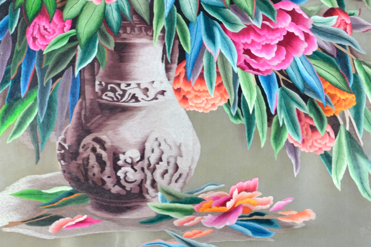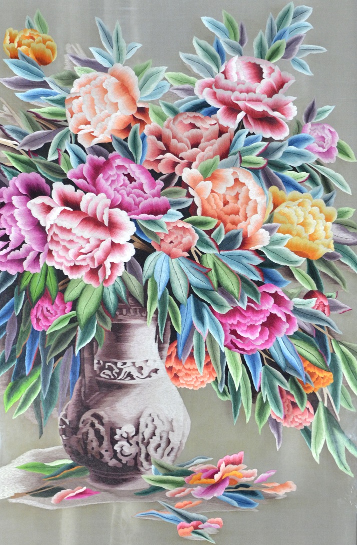 【產(chǎn)品名稱】:花瓶牡丹屏風(fēng) (作品代碼:P-1099) 【產(chǎn)品規(guī)格】:圖案尺寸為寬70cm,高110cm 外框整體尺寸寬130cm,高205cm 【產(chǎn)品工藝】:手工刺繡 【產(chǎn)品材質(zhì)】:真絲面料+雞翅木框+桑蠶絲線+玻璃 【產(chǎn)品包裝】:木箱包裝,用海綿包扎,確保運輸安全 【出廠價】:18600元 【產(chǎn)品運輸】:我司負(fù)責(zé)發(fā)往客戶指定地點,蘇州附近城市可送貨上門! 【產(chǎn)品說明】:此款雙面繡屏風(fēng),是由蘇州工藝師耗時三個月精心手工刺繡而成,刺繡圖案以象征富貴平安的牡丹花瓶為題材繡工精細(xì),顏色搭配均勻過渡自然,整體給人舒適,愜意之感,屏風(fēng)的框架選用雞翅木為料,是蘇繡屏風(fēng)中的經(jīng)典作品。是家用玄關(guān)或辦公室玄關(guān)的禮品!歡迎親臨嬌古蘇繡展示廳觀看實物! 【作品欣賞】 .jpg)