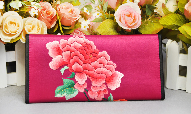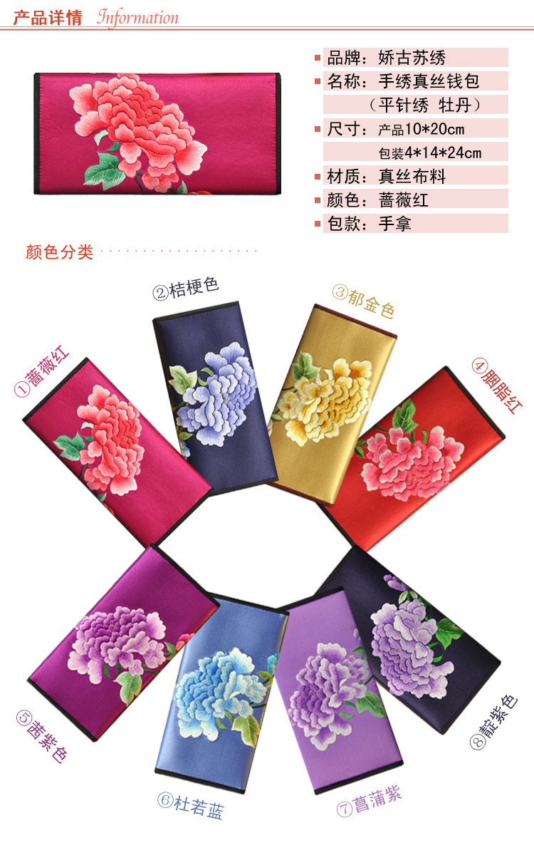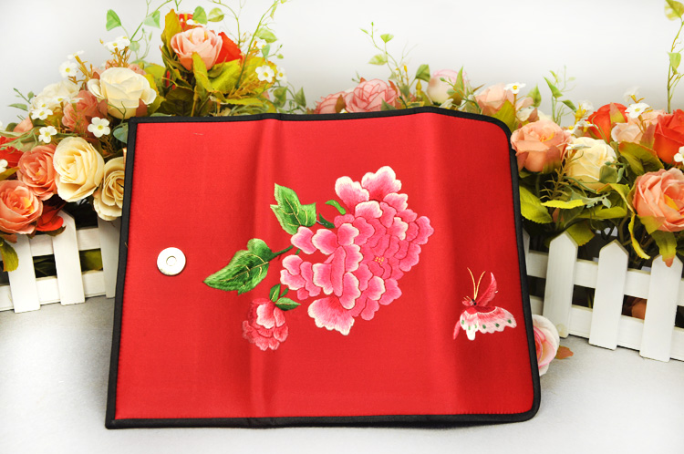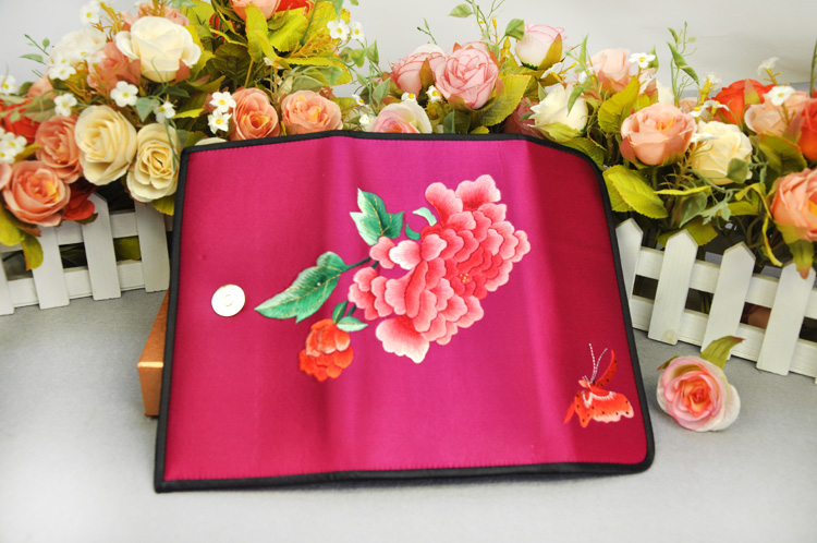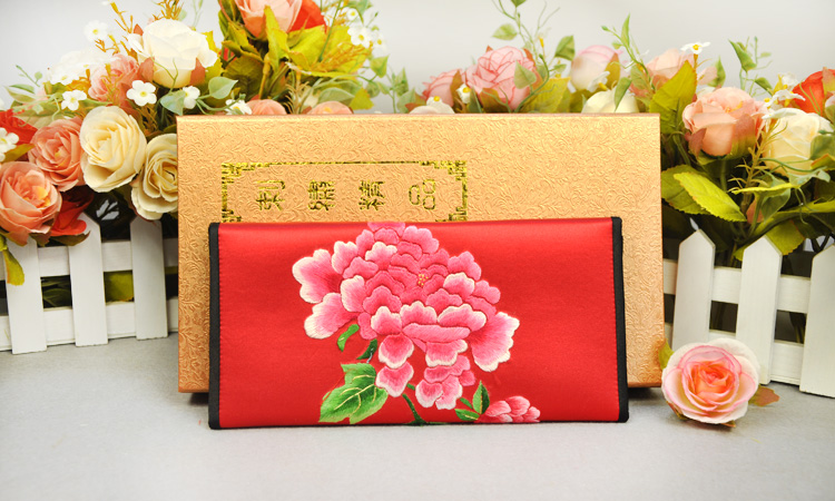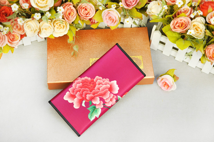 平繡牡丹 純手工刺繡 蘇繡錢(qián)包 高檔特色禮品 送領(lǐng)導(dǎo)送外國(guó)人禮品