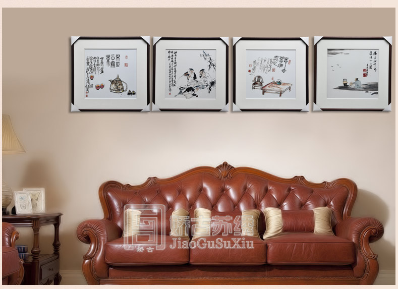 【品 牌】:嬌古 (作品代碼 D-1068) 【品 名】:中國(guó)元素裝飾畫(huà)(手工蘇繡) 【品 質(zhì)】:4-6絲刺繡 (蘇繡小知識(shí):1根蘇繡絲線可分為16絲,中檔刺繡皆為10絲所繡,中高檔刺繡皆為6-8絲,高檔刺繡皆為4-6絲,精品刺繡皆為1-4絲) 【尺 寸】:畫(huà)心尺寸50*50cm 整體尺寸75*75cm 【產(chǎn)品工藝】:手工刺繡+真絲底料 【絲線材質(zhì)】:蠶絲線 【用 途】:政府禮品、個(gè)人收藏、外賓禮品、生日禮物、賀壽禮品、領(lǐng)導(dǎo)升遷、出國(guó)禮品等等。 【出廠價(jià)格】:3000元/幅