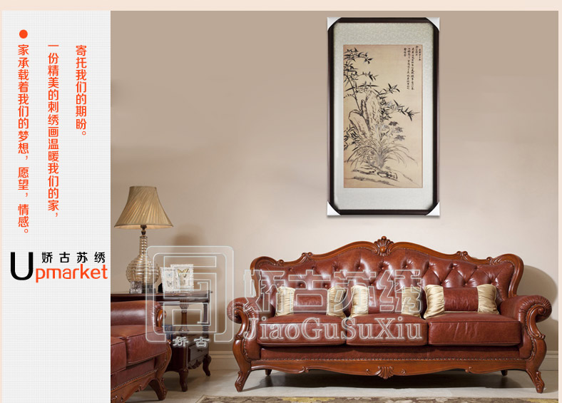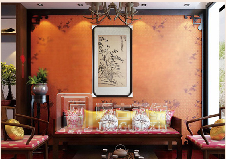 【品 牌】:嬌古 (作品代碼 D-1069)【品 名】:韻林三友裝飾畫【尺 寸】:畫心尺寸50*90cm 整體尺寸70*125cm【產(chǎn)品工藝】:手工刺繡【絲線材質(zhì)】:蠶絲線 【用 途】:政府禮品、個人收藏、外賓禮品、生日禮物、賀壽禮品、領(lǐng)導(dǎo)升遷、出國禮品等等。【出廠價格】:4200元